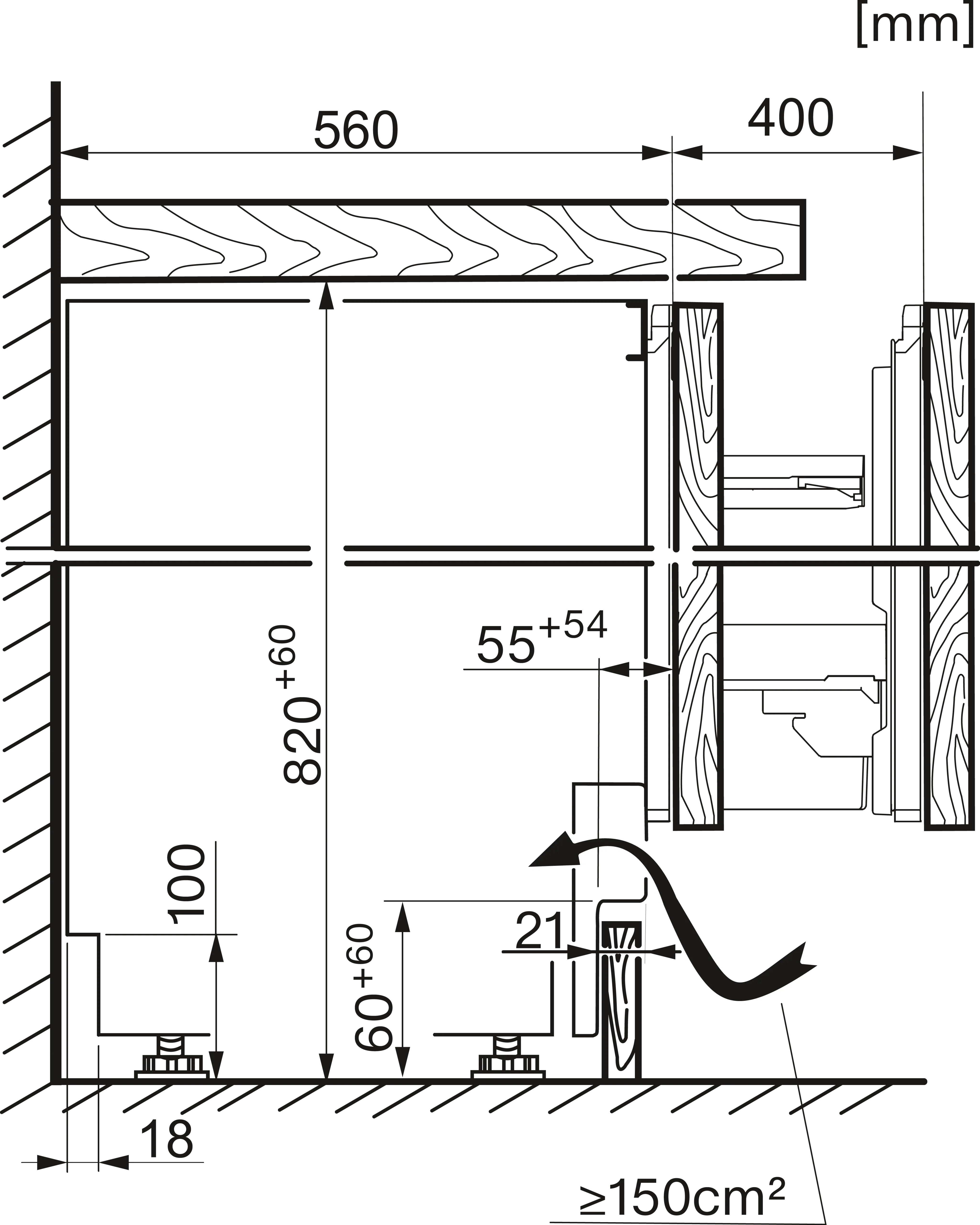 Установка встраиваемого холодильника